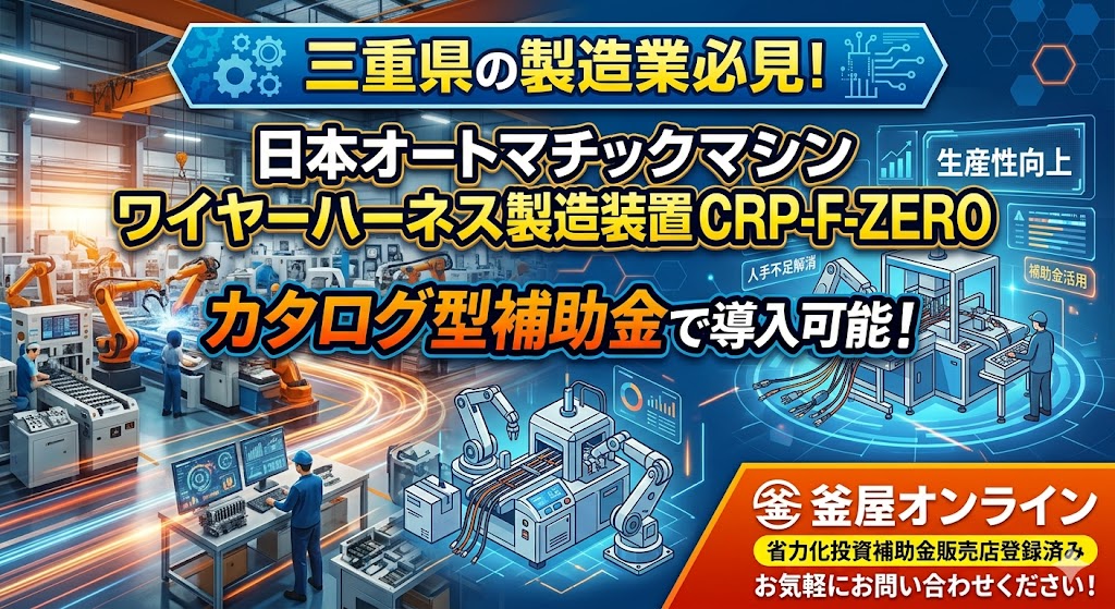 三重県の製造業必見!日本オートマチックマシンのワイヤーハーネス製造装置CRP-F-ZEROが省力化投資補助金カタログ型で導入可能!
